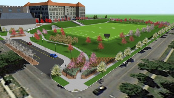 • A combination of 'pastoral and practical.' An all-weather field will be installed in the middle of the plot and would be available for use throughout the day for physical education classes and athletic contests for the Buffalo Public Schools. At the same time, the field will be surrounded by natural burms and streetscapes which will enhance the aesthetics of the western approach to our historic school building and neighborhood. This will allow spectators to be able to sit and enjoy sporting events. Students, neighbors or medical campus employees would be able enjoy a book or quiet lunch amidst some nature in the middle of the city.